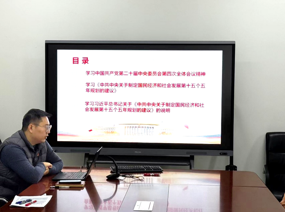会上,窦皓然同志首先带领全体党员学习中国共产党第二十届中央委员会第四次全体会议精神。他详细解读了全会召开的时代背景与重大意义,强调全会是在“十四五”目标任务即将胜利完成、向基本实现社会主义现代化迈进的关键节点召开的重要会议。结合全会公报内容,他重点介绍了“十四五”时期我国在经济实力、科技实力、综合国力等方面取得的历史性成就,以及“十五五”时期作为“基本实现社会主义现代化夯实基础、全面发力的关键时期”的战略定位, 坚持党的全面领导、坚持人民至上、坚持高质量发展、坚持全面深化改革、坚持有效市场和有为政府相结合、坚持统筹发展和安全等重要原则。