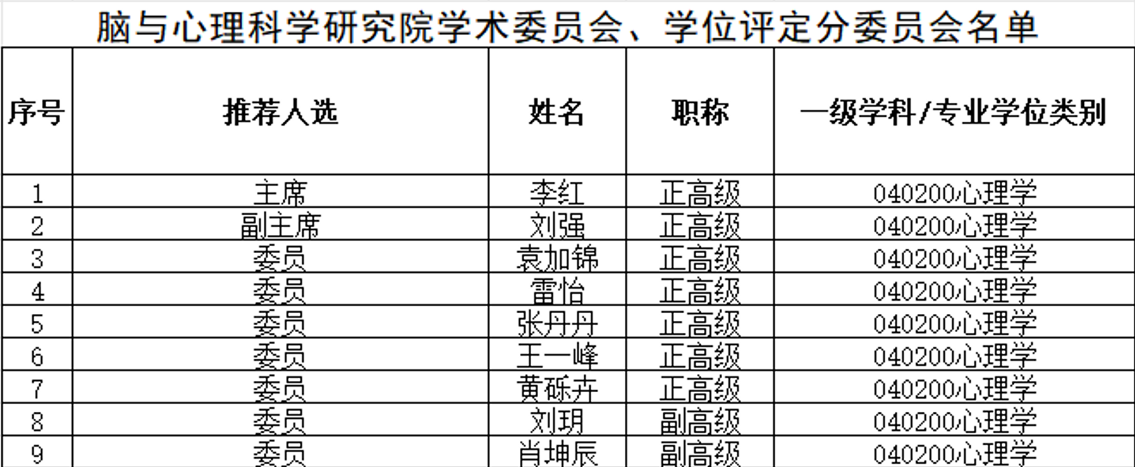 脑与心理科学研究院学术委员会、学位评定分委员会名单公示如下: